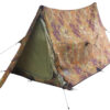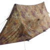 Классическая палатка-бивуак с тамбуром для снаряжения. Устанавливается как при помощи двух трекинговых палок, так и любых срубленных в лесу стоек. В случае сильного дождя или снега можно забраться в палатку и поставить рюкзаки в распор.