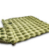 Два типа ткани. Светлая — дышащая ткань, выводит влагу изнутри спальника. Темная — усиленная ткань с влагозащитой.
