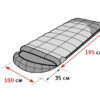 Ширина спальника — один метр, длина — почти два метра, а подголовника -35 см. В таком спальнике можно спать как в домашней кровати, не упираясь коленями в боковую молнию. Внутри спальника никакой холодной синтетики, только высококачественная 100% хлопковая шелковистая фланель. Это очень важно, так как на морозе синтетическая ткань почти обжигает кожу лица, что очень неприятно. Край спальника на уровне лица сделан в виде широкого отворота из фланели, а широкий валик из фланели закрывает край капюшона. Сложно возить с собой подушку, а куртка слишком жесткая для подушки. Поэтому в капюшоне сделано специальное отделение с двумя отверстиями. Просовываете руку и втягиваете мягкую кофту в отделение. Эта подушка никогда от вас не убежит. Фланелевые валики идут с двух сторон от молнии, закрывая входхолодному воздуху, который может проникать сквозь зубцы молнии.Но зачем вдоль молнии два валика? Представьте, вы расстегиваете молнии по периметру и получаете необъятное одеяло размером 2х2 метра, но в «обычных» спальниках по одному краю одеяла обязательно будет жесткая царапающаяся зубцами молния,но только не в Alexika. Валики закрывают молнию по всему периметру одеяла, и вы не коснетесь ее рукой или ногой.Спальник широкий и, чтобы не терять тепло, в спальнике есть широкий тепловой воротник, закрывающий ваши плечи на 360 градусов и закрывающийся на плече на скрытые пластиковые кнопочки. Для лучшего обхвата воротник затягивается шнуром. Но шнур может неприятно давить на плечи, а его свободная часть — путаться внутри спальника.Поэтому в спальниках Alexika шнур смещен на 7-8 см от края теплового воротника, а при затягивании образуется большой мягкий валик, нежно обхватывающий ваши плечи. Лишний шнур вы можете собрать и поместить в небольшой кармашек, расположенный на тепловом воротнике. Внутри спальника есть еще один карман. Это большойкарманиз мягкой сетки для носового платка и разных мелочей. Через сеточку видно все, что в нем лежит, и вы не забудете нужные вещи.Все это элементы системы Soft Space(Мягкое пространство).