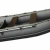 Отличительной особенностью надувной лодки Хантер 330 А является стационарно установленное надувное дно низкого давления. Надувное дно представляет собой независимый герметичный отсек, вклеенный между баллонами надувной лодки. Одним из очевидных плюсов такой конструкции является малый вес, компактность и жесткость в собранном виде. При сборке надувной лодки с дном низкого давления, как таковой монтаж пола отсутствует – достаточно просто накачать отсеки лодки и установить сиденья и весла.